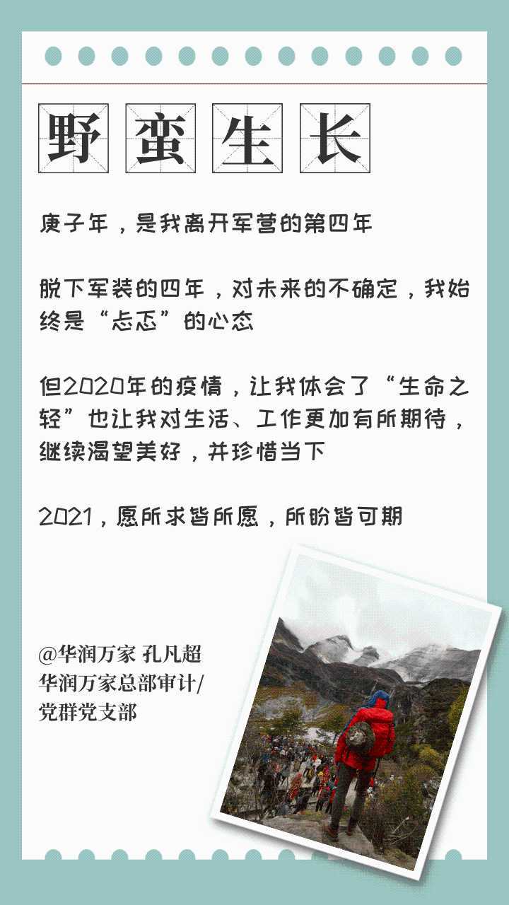 2020年有很多(duo)故事(shi),有歡笑有悲(bei)傷、有篤(du)定(ding)有徘徊、有汗(han)水還有輝煌……如果要(yao)用一個詞來概括這一年,你會選(xuan)哪(na)個?今天,就(jiu)讓(rang)我們(men)一起回顧2020年,看看華潤(run)“潤(run)小(xiao)編”們(men)的經(jing)歷中,是(shi)不是(shi)也有你的故事(shi)。