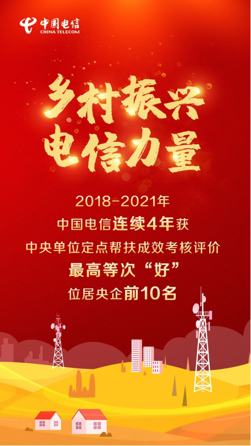 近年來(lai),中國電(dian)信(xin)堅決貫(guan)徹(che)落實黨中央、國務(wu)(wu)院關于(yu)鄉村振(zhen)興戰略的(de)重大決策部署(shu)。2021年,中國電(dian)信(xin)連續4年全面超額完成定點幫(bang)扶(fu)考核指(zhi)標任務(wu)(wu)且均位(wei)居央企前列,獲(huo)得全國脫貧攻堅總(zong)結(jie)表(biao)彰先進集體及先進個人等國家級榮譽4個,幫(bang)扶(fu)工作得到(dao)黨和(he)國家高(gao)度(du)認可。