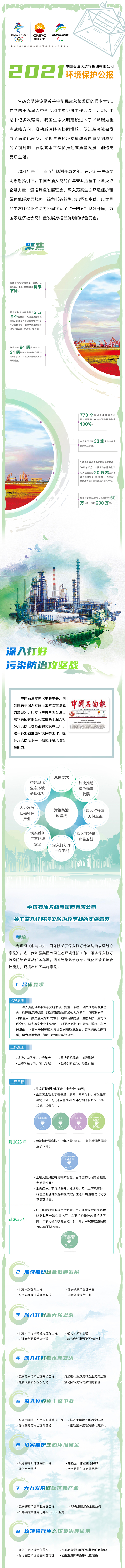 6月1日,中(zhong)國(guo)石(shi)油發布《2021年環境(jing)保護(hu)(hu)公報》,從(cong)深入(ru)打好污染防治攻(gong)堅(jian)戰、夯(hang)實環保管理、關(guan)注(zhu)“雙碳”目標、助力綠色冬奧等(deng)六個方(fang)面,全方(fang)位展示了中(zhong)國(guo)石(shi)油在環境(jing)保護(hu)(hu)領域(yu)的成績(ji)和綠色發展足跡。