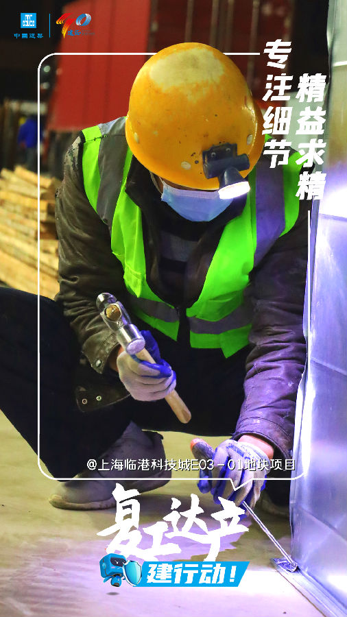 在上海奉(feng)賢(xian)一期工(gong)(gong)程,中建(jian)方程建(jian)設者正在進(jin)行扣件檢查工(gong)(gong)作。