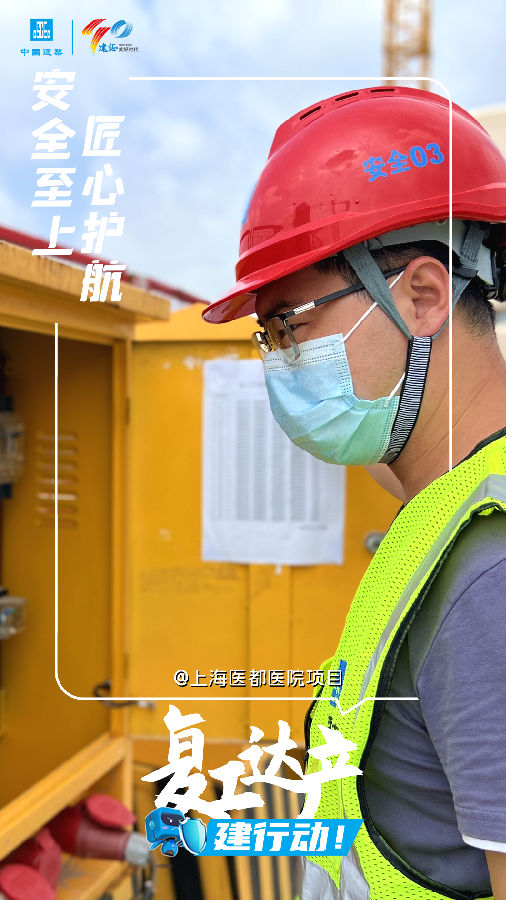 在上海醫都醫院項目,中建(jian)科(ke)技建(jian)設者正(zheng)在進(jin)行用(yong)電專項檢查,保障用(yong)電安全(quan)。