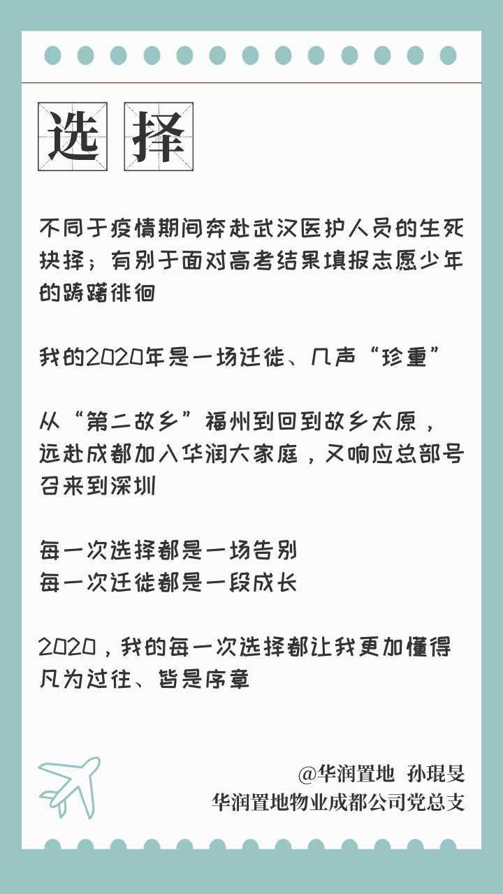 2020年(nian)有(you)(you)(you)很多故事,有(you)(you)(you)歡笑有(you)(you)(you)悲傷、有(you)(you)(you)篤定有(you)(you)(you)徘(pai)徊、有(you)(you)(you)汗水還有(you)(you)(you)輝(hui)煌……如果要(yao)用(yong)一(yi)個(ge)詞來概括(kuo)這(zhe)一(yi)年(nian),你(ni)會選哪個(ge)?今(jin)天,就讓(rang)我們(men)一(yi)起(qi)回顧2020年(nian),看看華潤“潤小編”們(men)的經(jing)歷中,是(shi)不是(shi)也有(you)(you)(you)你(ni)的故事。