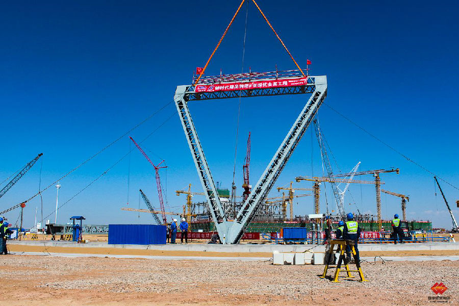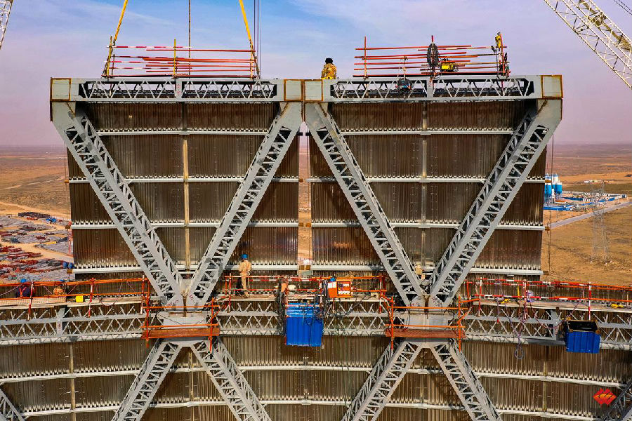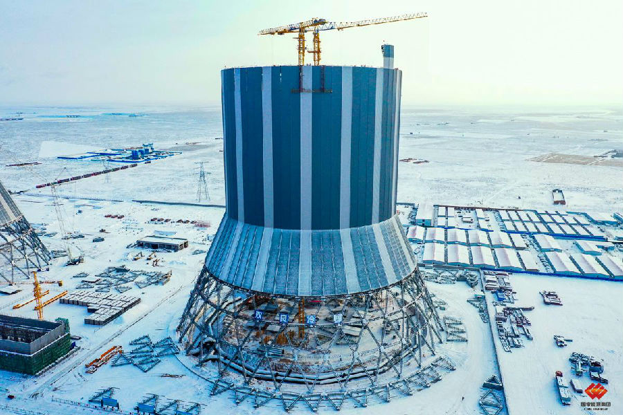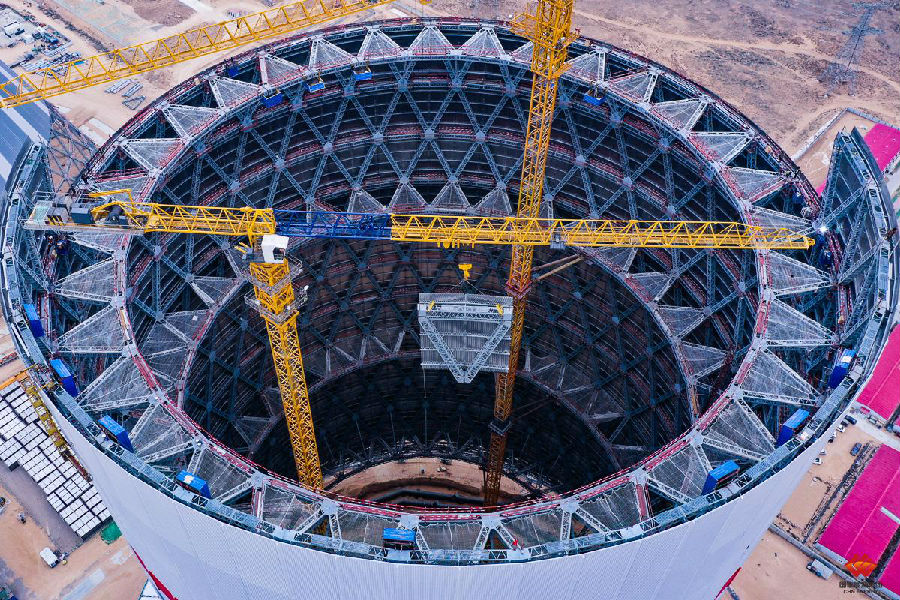 2020年(nian)11月21日,內蒙古鄂(e)爾(er)多斯(si)市(shi)前旗地區的溫(wen)度(du)已降至(zhi)零下(xia)20攝(she)氏(shi)度(du)。相比(bi)冬(dong)季因低溫(wen)結(jie)塊無法施工(gong)(gong)的混凝土(tu)型塔(ta),1號冷卻(que)塔(ta)憑(ping)借其鋼質優(you)勢(shi)可以繼續施工(gong)(gong)。