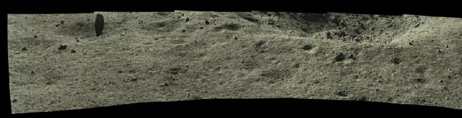 (1)全景相機(ji)擇機(ji)對石塊和撞擊坑(keng)進行彩色圖像。