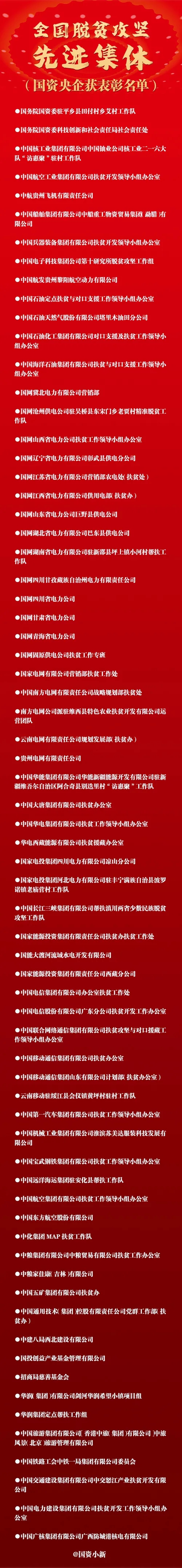 國(guo)資央企(qi)69個集體被授予“全國(guo)脫貧攻(gong)堅先進集體”榮譽稱(cheng)號