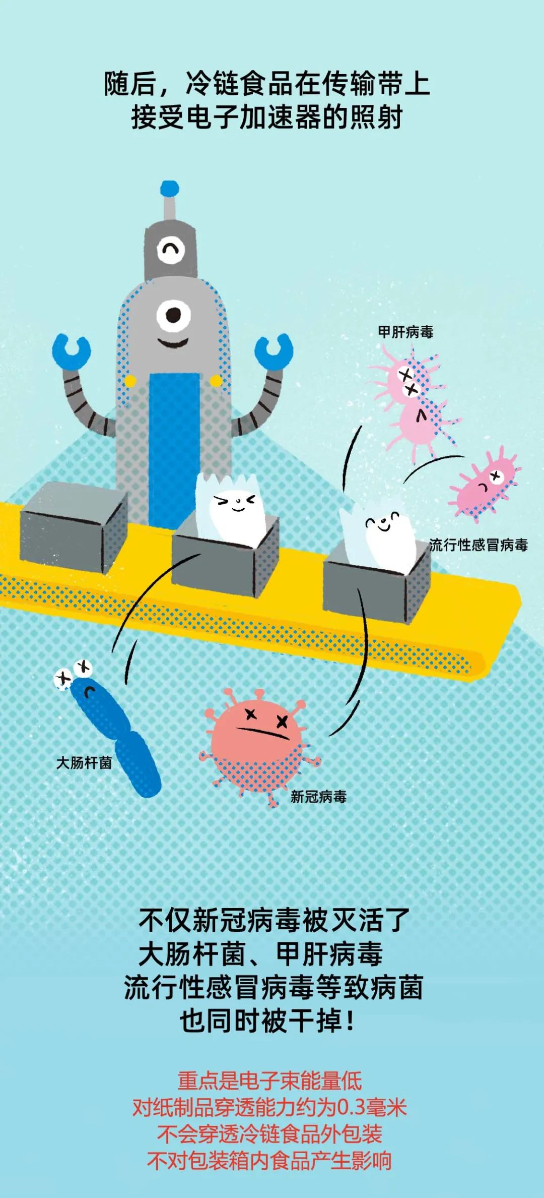 一圖讀懂電子束如何滅活冷鏈食品外包裝新冠病毒