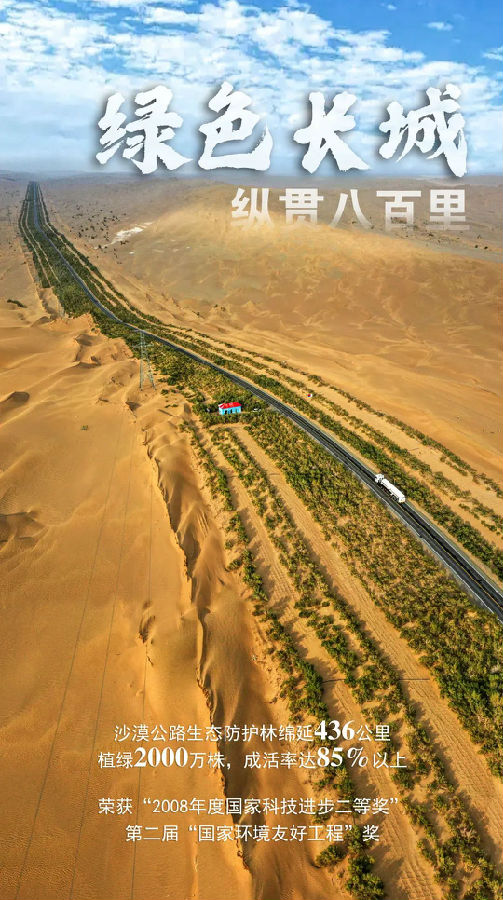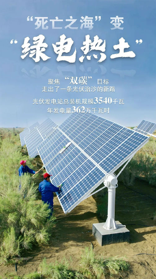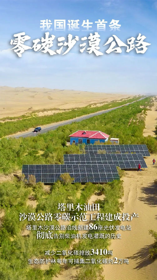 6月2日,中(zhong)國(guo)石油(you)塔里木油(you)田沙(sha)漠(mo)公路(lu)零碳(tan)示范工程在塔克拉(la)瑪干(gan)沙(sha)漠(mo)建成投產,新建的86座光伏(fu)電站散(san)布在生態防護林帶中(zhong),展現(xian)出別樣(yang)“光”景。公路(lu)沿線植被自此徹底告別了柴油(you)機發(fa)電灌(guan)溉的歷史,實(shi)現(xian)全線零碳(tan)排放(fang),塔里木沙(sha)漠(mo)公路(lu)成為我國(guo)首條零碳(tan)沙(sha)漠(mo)公路(lu)。