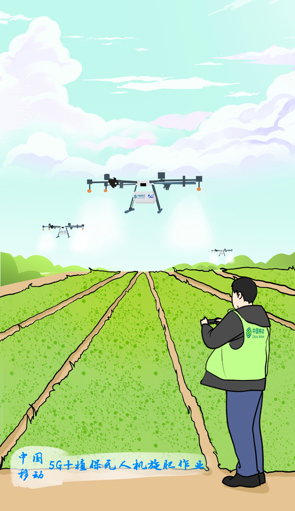 “5G+植保(bao)”無人(ren)機施肥作(zuo)業,既精準又環保(bao),效率相比人(ren)工作(zuo)業提升數十(shi)倍。