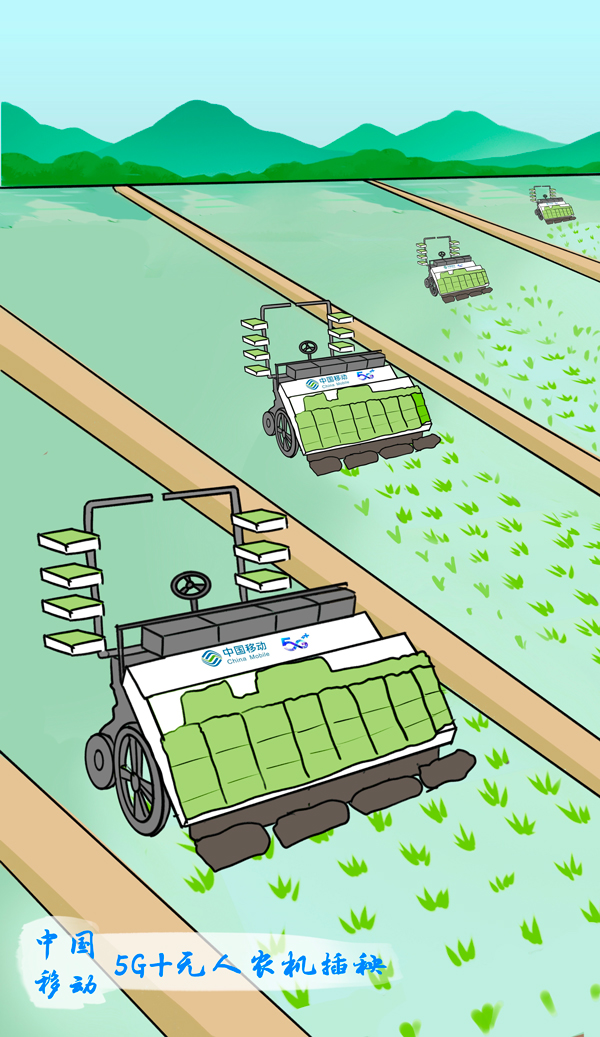 “5G+無人農機”插秧,變田間勞(lao)作為后臺遠程操控,實現插秧無人化。
