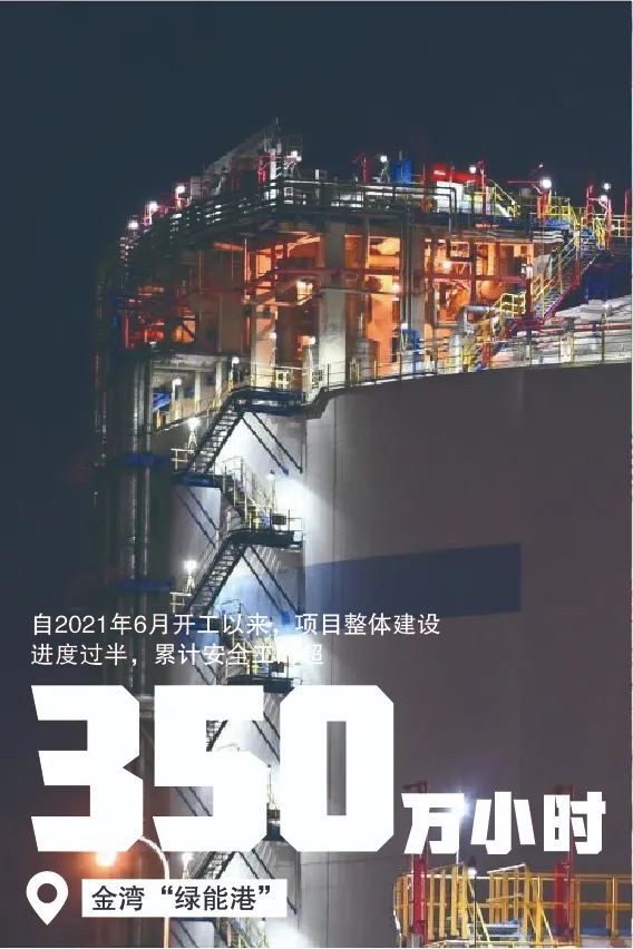 金灣“綠能港”二期項(xiang)目(mu)被列入國家石油(you)天(tian)(tian)然氣(qi)基礎設(she)施重點工程,同時建(jian)設(she)5座27萬立方米液化天(tian)(tian)然氣(qi)儲罐及配套(tao)設(she)施,建(jian)成投產后(hou),將成為華南(nan)地區規模(mo)最大的天(tian)(tian)然氣(qi)儲運基地,年處理(li)能力可(ke)達(da)700萬噸,折合氣(qi)態天(tian)(tian)然氣(qi)約100億(yi)立方米。該(gai)項(xiang)目(mu)自2021年6月開工建(jian)設(she),截至目(mu)前整(zheng)體建(jian)設(she)進度(du)過(guo)半(ban)。項(xiang)目(mu)經受了(le)暴(bao)雨、狂(kuang)風、臺(tai)風、酷暑等極端天(tian)(tian)氣(qi)的考驗,累計安全(quan)工時超350萬小時。