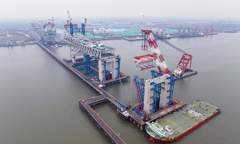 常泰长江大桥主航道桥钢桁梁架...