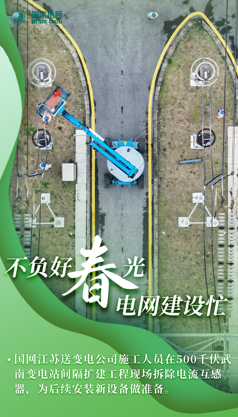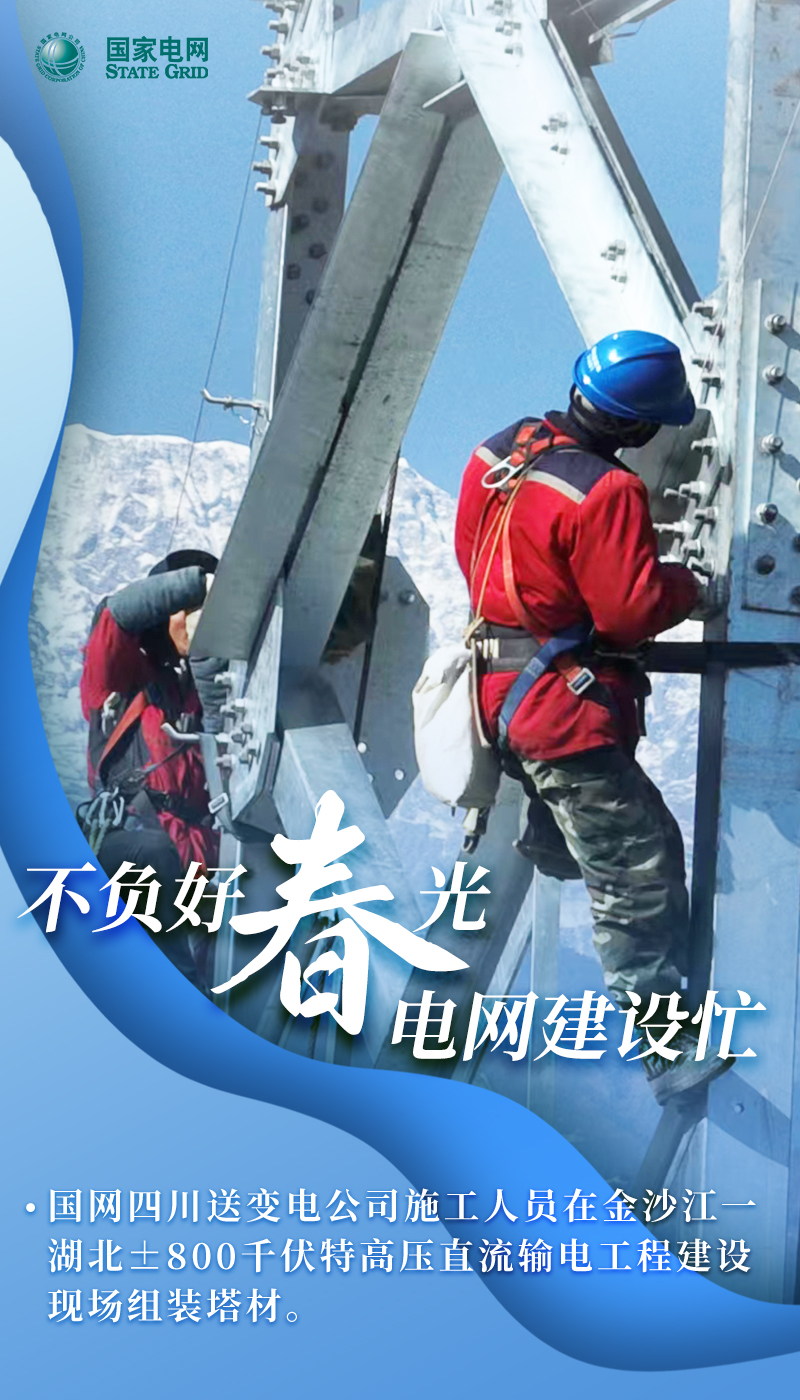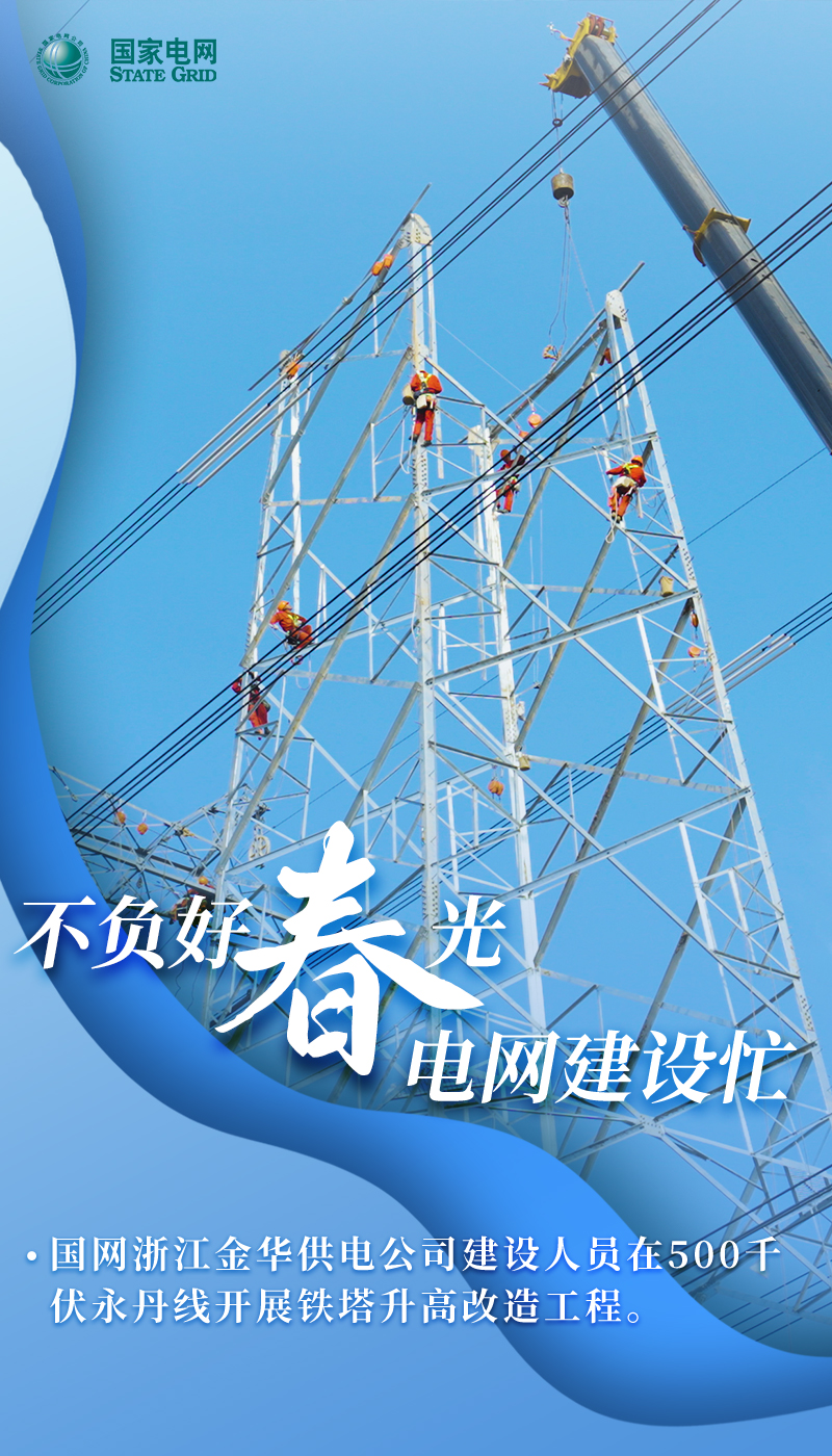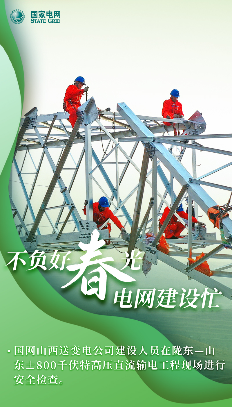 又是一年春好時。國家(jia)電(dian)網(wang)有限公司(si)堅決扛牢電(dian)力保供首要責(ze)任,組織(zhi)各單位(wei)抓住當前工程建設好時機,細化(hua)安全(quan)(quan)、人員、物(wu)資、裝備等各項(xiang)措(cuo)施(shi),全(quan)(quan)力推動電(dian)網(wang)重(zhong)大(da)項(xiang)目建設,保障電(dian)網(wang)安全(quan)(quan)穩定運(yun)行和(he)電(dian)力可(ke)靠(kao)供應,服務經濟社會高質量發(fa)展。