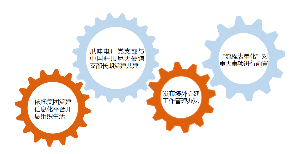 印尼項目(mu)目(mu)前3個黨支部(bu),87名(ming)黨員,配備有(you)專(zhuan)兼職黨務人員,按(an)“組(zu)織嚴密、機構健全、內外有(you)別(bie)、內部(bu)堅持(chi)、外不公開(kai)、有(you)效運(yun)轉(zhuan)”24字原則(ze)開(kai)展工作(zuo),有(you)力引領海外項目(mu)在(zai)“一帶一路”建(jian)設中強品牌、樹形(xing)象。