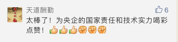 網友@天道(dao)酬勤:太棒(bang)了!為央企的國家責任和技術實力喝彩點贊!