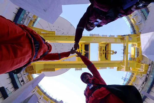 3月(yue),我國自主知識產權的第(di)三代(dai)核(he)電“華(hua)龍一號(hao)”示范(fan)工程第(di)二(er)臺機組(zu)進行穹頂吊裝。在(zai)穹頂起吊那一刻,參與吊裝的工程師(shi)們(men)留下了這張(zhang)合影,然后(hou)奔赴各自的工作崗位(wei)。世界核(he)電迎來了“中國芯”時代(dai),為茁壯成長的“華(hua)龍一號(hao)”喝彩!