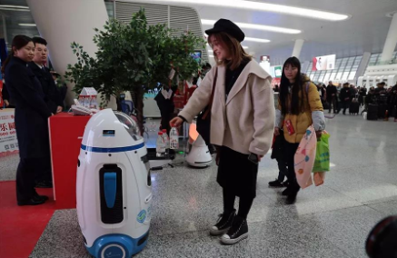 在浙江杭州東站,中國移動“機器人”,為來往的旅客送上礦泉(quan)水
