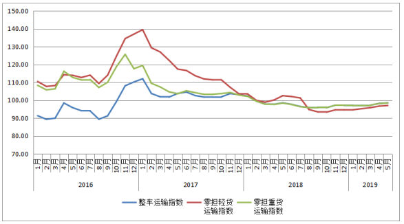 表(biao)1 2019年5月(yue)中國公路物流(liu)運(yun)價指數表(biao)