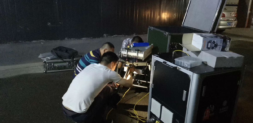 航天科技工(gong)程師正(zheng)在現場進行應急(ji)通信(xin)設備調試