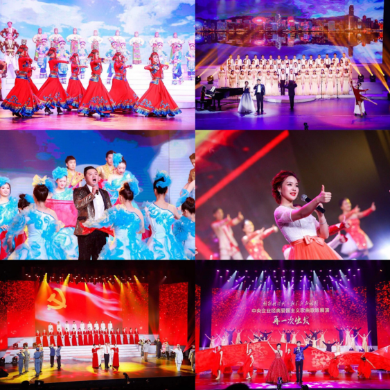 本次(ci)展(zhan)演(yan)以(yi)(yi)“再一(yi)次(ci)出(chu)發(fa)”為(wei)(wei)主題,由來自南(nan)方電網、南(nan)航(hang)集(ji)(ji)(ji)團(tuan)(tuan)(tuan)(tuan)、招(zhao)商(shang)局集(ji)(ji)(ji)團(tuan)(tuan)(tuan)(tuan)、華潤集(ji)(ji)(ji)團(tuan)(tuan)(tuan)(tuan)、中(zhong)國(guo)旅游集(ji)(ji)(ji)團(tuan)(tuan)(tuan)(tuan)、中(zhong)廣核(he)、華僑城集(ji)(ji)(ji)團(tuan)(tuan)(tuan)(tuan)、南(nan)光集(ji)(ji)(ji)團(tuan)(tuan)(tuan)(tuan)以(yi)(yi)及友(you)情(qing)參演(yan)的(de)(de)(de)中(zhong)核(he)集(ji)(ji)(ji)團(tuan)(tuan)(tuan)(tuan)等(deng)中(zhong)央(yang)(yang)企(qi)(qi)(qi)業干(gan)部員(yuan)工,通(tong)過歌舞、講述、情(qing)景劇、合唱(chang)等(deng)形式(shi)精彩呈現(xian)。開(kai)場舞《放歌新(xin)(xin)時代(dai)》拉開(kai)序幕。《不(bu)忘初心(xin)》《春(chun)天(tian)的(de)(de)(de)故事(shi)》《國(guo)之(zhi)脊梁(liang)》《東(dong)方之(zhi)珠》等(deng)節(jie)目組成了(le)“不(bu)忘初心(xin)”第(di)一(yi)篇章(zhang),生動(dong)演(yan)繹(yi)了(le)央(yang)(yang)企(qi)(qi)(qi)人(ren)(ren)不(bu)忘初心(xin),薪火相(xiang)傳、報效祖國(guo)的(de)(de)(de)光榮使命(ming);《贊(zan)(zan)贊(zan)(zan)新(xin)(xin)時代(dai)》《大國(guo)頂梁(liang)柱(zhu)》《家(jia)國(guo)情(qing)懷(huai)》《我(wo)們都是追(zhui)夢人(ren)(ren)》等(deng)節(jie)目組成了(le)“牢(lao)記使命(ming)”第(di)二(er)篇章(zhang),展(zhan)現(xian)出(chu)央(yang)(yang)企(qi)(qi)(qi)人(ren)(ren)牢(lao)記使命(ming),追(zhui)求夢想、砥礪奮斗(dou)的(de)(de)(de)開(kai)拓精神;《新(xin)(xin)的(de)(de)(de)天(tian)地(di)》《獻(xian)給粵港(gang)澳大灣(wan)區的(de)(de)(de)贊(zan)(zan)歌》《我(wo)宣誓(shi)》《再一(yi)次(ci)出(chu)發(fa)》等(deng)節(jie)目組成了(le)“再一(yi)次(ci)出(chu)發(fa)”第(di)三篇章(zhang),真摯表(biao)達(da)了(le)央(yang)(yang)企(qi)(qi)(qi)人(ren)(ren)在(zai)習近平新(xin)(xin)時代(dai)中(zhong)國(guo)特色社會主義思想指引(yin)下,凝聚(ju)起再一(yi)次(ci)出(chu)發(fa)的(de)(de)(de)磅礴力量、為(wei)(wei)實現(xian)中(zhong)華民族(zu)偉大復(fu)興的(de)(de)(de)中(zhong)國(guo)夢而不(bu)懈奮斗(dou)的(de)(de)(de)豪情(qing)壯志。展(zhan)演(yan)尾(wei)聲(sheng),在(zai)悠揚的(de)(de)(de)旋律中(zhong),全場揮展(zhan)紅旗、合唱(chang)《我(wo)和我(wo)的(de)(de)(de)祖國(guo)》,生動(dong)抒發(fa)了(le)央(yang)(yang)企(qi)(qi)(qi)人(ren)(ren)對祖國(guo)的(de)(de)(de)摯愛之(zhi)情(qing),把活動(dong)推向高潮。