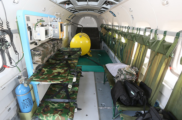 此(ci)次參與救援行動的(de)(de)直(zhi)升(sheng)機(ji)以國產“直(zhi)-8G”型(xing)直(zhi)升(sheng)機(ji)為平臺(tai),是我國自主研發、完全(quan)國產化的(de)(de)新(xin)型(xing)治、送(song)(song)結合的(de)(de)救護直(zhi)升(sheng)機(ji)。加(jia)裝了(le)(le)模塊(kuai)化的(de)(de)醫療救護系統(tong),配備(bei)了(le)(le)除(chu)顫監護儀、急救呼吸(xi)機(ji)、輸液泵(beng)、吸(xi)引器(qi)、電子(zi)血壓計、脈(mo)搏血氧(yang)飽和度儀、供(gong)氧(yang)系統(tong)、綜合電源系統(tong)等設備(bei),可實施搜索營救、遇險急救、快速后(hou)送(song)(song)任務。