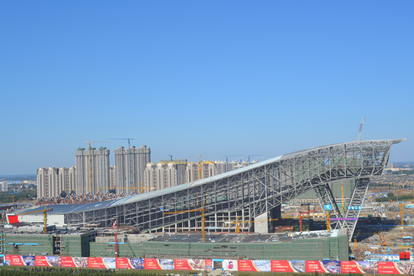 哈(ha)爾濱萬達茂工(gong)程室(shi)內(nei)滑(hua)雪(xue)場雪(xue)道長度近500米,場內(nei)總面(mian)積(ji)8萬平方米,相當于(yu)10個標準足(zu)球場大小。而之(zhi)前世界最大室(shi)內(nei)滑(hua)雪(xue)場——迪拜(bai)滑(hua)雪(xue)場的面(mian)積(ji)是2.25萬平方米。建(jian)設(she)如此規(gui)模的工(gong)程,施(shi)工(gong)難(nan)度異(yi)乎尋常,第(di)一個難(nan)題就是鋼(gang)結構的施(shi)工(gong)。