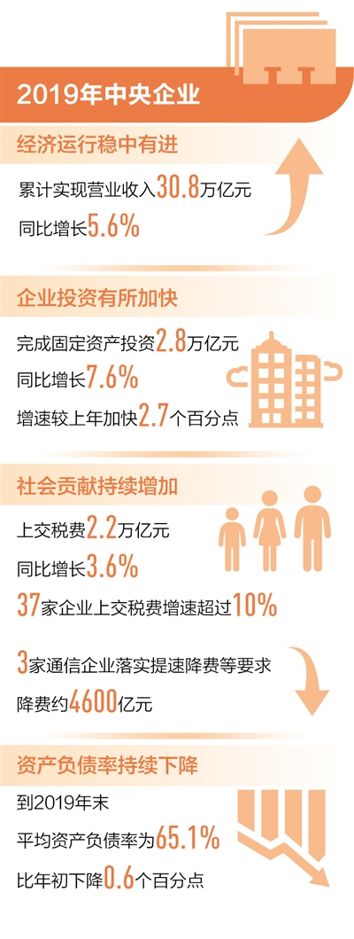 “2019年(nian),中(zhong)央企業發(fa)(fa)展既(ji)取得了量(liang)的合理增(zeng)長,也(ye)實現(xian)了質的穩步(bu)提(ti)高(gao),高(gao)質量(liang)發(fa)(fa)展的基(ji)礎進一(yi)步(bu)鞏固,較好實現(xian)了全年(nian)各(ge)項預期目標。”彭華崗具體分析了去年(nian)央企經濟運(yun)行的主要情況——