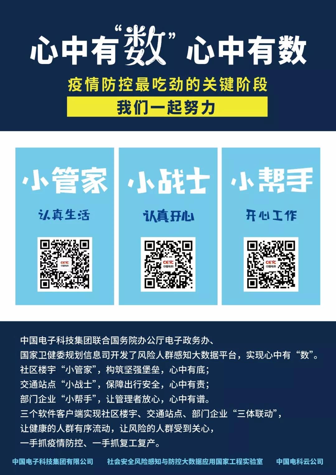 疫情(qing)(qing)防(fang)控關鍵時期,中國電(dian)科(ke)火速上線(xian),推出疫情(qing)(qing)防(fang)控和復工復產(chan)三款軟件。