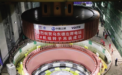 近日,由中國能建葛洲壩集團承擔安裝施工任務的烏東德水電站左岸地下電站5號機組轉子成功吊裝。資料照片