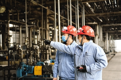 2月20日,在中國石化集團重慶川維化工有限公司,工作人員在生產線上巡檢。記者 唐奕 攝