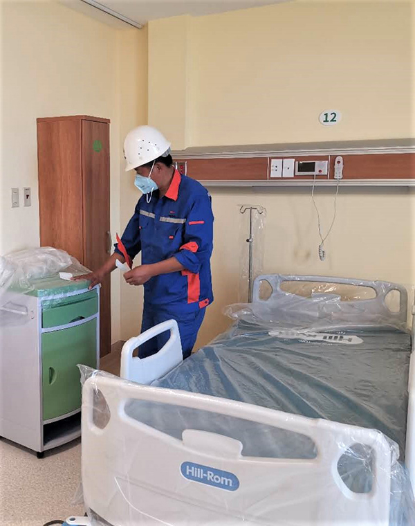 “在疫情(qing)期間實施搶工(gong),挑戰(zhan)比以往更大。但為了(le)特(te)多人(ren)(ren)民(min)的生(sheng)(sheng)命健康安全,我(wo)們會(hui)像國內搶建火神山醫院(yuan)一樣,擔起我(wo)們的責(ze)任。”項目(mu)負責(ze)人(ren)(ren)李東(dong)生(sheng)(sheng)表示,項目(mu)部既要(yao)迅速(su)響應業主需求,還要(yao)控制施工(gong)人(ren)(ren)員密度,防止出(chu)現交(jiao)叉感染。項目(mu)部緊急召開會(hui)議(yi),暫停其他(ta)區(qu)域(yu)施工(gong),協調多方資(zi)源(yuan),將其他(ta)區(qu)域(yu)床位設備(bei)轉移(yi)到(dao)指定區(qu)域(yu)。經過7天的緊張工(gong)作,當地時間3月24日,所有病房床位和設備(bei)已移(yi)交(jiao)給業主。