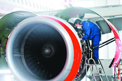 貝迪克凌云(宜昌)飛機維修工程有限公司維修基地,技術人員正在為疫情后接收的首批飛機實施定檢。
