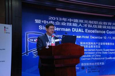 12月9日至12月11日,由(you)國(guo)(guo)(guo)(guo)(guo)(guo)務(wu)(wu)院(yuan)國(guo)(guo)(guo)(guo)(guo)(guo)資(zi)委(wei)(wei)與德(de)國(guo)(guo)(guo)(guo)(guo)(guo)職(zhi)(zhi)業(ye)(ye)教育(yu)(yu)聯(lian)盟共同(tong)(tong)主(zhu)(zhu)辦的(de)“2013年(nian)中(zhong)德(de)雙元(yuan)制(zhi)職(zhi)(zhi)業(ye)(ye)教育(yu)(yu)大(da)(da)會(hui)(hui)暨中(zhong)央企(qi)(qi)業(ye)(ye)技能(neng)人才(cai)隊伍建設經驗交(jiao)流會(hui)(hui)”在廣州召開。國(guo)(guo)(guo)(guo)(guo)(guo)務(wu)(wu)院(yuan)國(guo)(guo)(guo)(guo)(guo)(guo)資(zi)委(wei)(wei)群工局(ju)(ju)局(ju)(ju)長(chang)謝俊出席開幕式(shi)并講(jiang)話。大(da)(da)會(hui)(hui)由(you)國(guo)(guo)(guo)(guo)(guo)(guo)務(wu)(wu)院(yuan)國(guo)(guo)(guo)(guo)(guo)(guo)資(zi)委(wei)(wei)外事局(ju)(ju)局(ju)(ju)長(chang)陸志(zhi)軍主(zhu)(zhu)持。德(de)國(guo)(guo)(guo)(guo)(guo)(guo)外交(jiao)部(bu)(bu)國(guo)(guo)(guo)(guo)(guo)(guo)務(wu)(wu)部(bu)(bu)長(chang)皮珀女士通過視頻(pin)為大(da)(da)會(hui)(hui)致(zhi)辭,教育(yu)(yu)部(bu)(bu)職(zhi)(zhi)業(ye)(ye)教育(yu)(yu)與成人教育(yu)(yu)司(si)司(si)長(chang)葛道(dao)凱、人力資(zi)源(yuan)社會(hui)(hui)保障部(bu)(bu)職(zhi)(zhi)業(ye)(ye)能(neng)力建設司(si)副司(si)長(chang)劉丹、德(de)國(guo)(guo)(guo)(guo)(guo)(guo)職(zhi)(zhi)業(ye)(ye)教育(yu)(yu)聯(lian)盟副主(zhu)(zhu)席漢斯巴赫在開幕儀(yi)式(shi)上分(fen)(fen)別講(jiang)話。中(zhong)國(guo)(guo)(guo)(guo)(guo)(guo)遠洋(yang)集團青島(dao)遠洋(yang)船員(yuan)職(zhi)(zhi)業(ye)(ye)教育(yu)(yu)學(xue)院(yuan)院(yuan)長(chang)馬貴(gui)川(chuan)和德(de)國(guo)(guo)(guo)(guo)(guo)(guo)職(zhi)(zhi)業(ye)(ye)教育(yu)(yu)教育(yu)(yu)聯(lian)盟主(zhu)(zhu)席羅(luo)伊特分(fen)(fen)別代(dai)(dai)表(biao)中(zhong)德(de)雙方職(zhi)(zhi)業(ye)(ye)教育(yu)(yu)機(ji)構作主(zhu)(zhu)題發言(yan)。國(guo)(guo)(guo)(guo)(guo)(guo)資(zi)委(wei)(wei)、教育(yu)(yu)部(bu)(bu)、人社部(bu)(bu)、國(guo)(guo)(guo)(guo)(guo)(guo)家(jia)外專局(ju)(ju)有(you)關司(si)局(ju)(ju)領導,各中(zhong)央企(qi)(qi)業(ye)(ye)有(you)關部(bu)(bu)門負責同(tong)(tong)志(zhi)以(yi)及德(de)國(guo)(guo)(guo)(guo)(guo)(guo)職(zhi)(zhi)業(ye)(ye)教育(yu)(yu)聯(lian)盟成員(yuan)單位代(dai)(dai)表(biao)近200人參加(jia)了(le)會(hui)(hui)議。