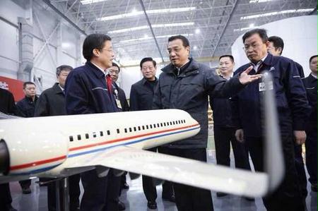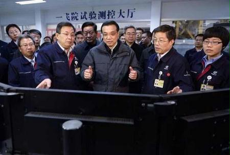 1月28日(ri),李克強總理(li)到中(zhong)(zhong)航(hang)工業(ye)第一飛(fei)機(ji)設(she)計研究院考察。他(ta)說,這里集成了中(zhong)(zhong)國航(hang)空工業(ye)的重大(da)技術研發(fa),中(zhong)(zhong)國航(hang)空工業(ye)必須(xu)要(yao)走自己的路。臨行(xing)前,研發(fa)人員送(song)給(gei)總理(li)一款(kuan)先進飛(fei)機(ji)的模型,李克強愉(yu)快接過(guo),勉勵大(da)家早日(ri)造出真機(ji),不僅(jin)要(yao)在中(zhong)(zhong)國藍天翱翔,也要(yao)飛(fei)向世界。