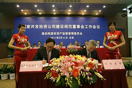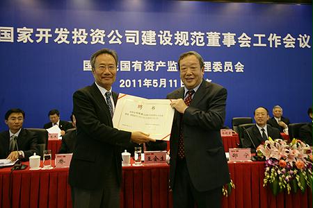 5月11日上(shang)午,國資(zi)委在京(jing)召開(kai)國家開(kai)發(fa)投(tou)資(zi)公司(si)(以下(xia)簡稱國投(tou))建設規范董事(shi)會(hui)工作會(hui)議。國資(zi)委副(fu)主任邵寧出(chu)席會(hui)議并(bing)作重要(yao)講話(hua),監事(shi)會(hui)主席呂黃(huang)生(sheng)、中組部干部五局和國資(zi)委改組局、企干一局負(fu)責同志出(chu)席了(le)會(hui)議。邵寧代表國務(wu)院國資(zi)委向國投(tou)外部董事(shi)頒發(fa)了(le)聘書(shu)。國投(tou)與外部董事(shi)簽訂了(le)服務(wu)合(he)約。
