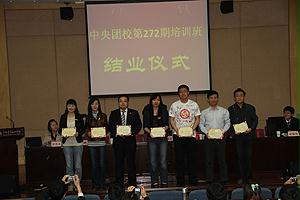 2011年(nian)(nian)4月(yue)18日至22日,中(zhong)(zhong)(zhong)(zhong)(zhong)(zhong)央(yang)企(qi)(qi)(qi)業(ye)(ye)團(tuan)工(gong)委(wei)(wei)在中(zhong)(zhong)(zhong)(zhong)(zhong)(zhong)央(yang)團(tuan)校(xiao)舉辦了第二期中(zhong)(zhong)(zhong)(zhong)(zhong)(zhong)央(yang)企(qi)(qi)(qi)業(ye)(ye)基層優秀團(tuan)干部(bu)(bu)培訓班(ban)(中(zhong)(zhong)(zhong)(zhong)(zhong)(zhong)央(yang)團(tuan)校(xiao)第272期團(tuan)干部(bu)(bu)培訓班(ban))。中(zhong)(zhong)(zhong)(zhong)(zhong)(zhong)央(yang)企(qi)(qi)(qi)業(ye)(ye)144名基層優秀團(tuan)干部(bu)(bu)參加了培訓。中(zhong)(zhong)(zhong)(zhong)(zhong)(zhong)央(yang)企(qi)(qi)(qi)業(ye)(ye)團(tuan)工(gong)委(wei)(wei)書(shu)記、中(zhong)(zhong)(zhong)(zhong)(zhong)(zhong)央(yang)企(qi)(qi)(qi)業(ye)(ye)青聯主(zhu)席許高峰,中(zhong)(zhong)(zhong)(zhong)(zhong)(zhong)央(yang)團(tuan)校(xiao)常務(wu)副(fu)校(xiao)長、黨委(wei)(wei)副(fu)書(shu)記王新清出(chu)席開(kai)班(ban)儀式并(bing)講(jiang)話(hua)。國資委(wei)(wei)群(qun)工(gong)局青年(nian)(nian)處(chu)處(chu)長巴(ba)清宏、中(zhong)(zhong)(zhong)(zhong)(zhong)(zhong)央(yang)團(tuan)校(xiao)輪訓部(bu)(bu)主(zhu)任薩仁(ren)高娃、中(zhong)(zhong)(zhong)(zhong)(zhong)(zhong)國海(hai)洋(yang)石油(you)總公司團(tuan)委(wei)(wei)副(fu)書(shu)記賀群(qun)慧等參加了開(kai)班(ban)儀式。