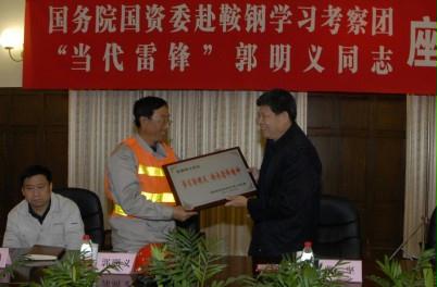 座談會上,曾堅同志代表國務院國資委直屬機關黨委、直屬機關郭明義愛心團隊向鞍鋼集團公司黨委表示感謝。他指出,鞍鋼被譽為中國鋼鐵工業的搖籃,不僅為我國國民經濟社會發展作出了重大貢獻,更積累了寶貴的精神財富,涌現出孟泰、王崇倫、雷鋒,以及郭明義等一大批英模,在他們身上集中體現了幾代鞍鋼人“創新、求實、拼爭、奉獻”的精神。這次到鞍鋼學習考察,與郭明義交流座談,就是以實際行動積極響應黨中央的號召和貫徹落實國務院國資委黨委要求,在深入開展踐行雷鋒精神、學習弘揚郭明義同志先進事跡活動中進一步打牢團員青年思想政治素質,立足本職,從點滴做起,從身邊做起,切實轉變工作作風,提升履職能力。他還向郭明義同志介紹了國務院國資委直屬機關郭明義愛心團隊開展學雷鋒學郭明義的活動情況,并對下一步扎實推進郭明義愛心團隊活動常態化提出了五點要求:一是更加注重把握精神實質;二是更加注重創新活動載體;三是更加注重加強機制建設;四是更加注重營造良好氛圍;五是更加注重抓好活動結合。