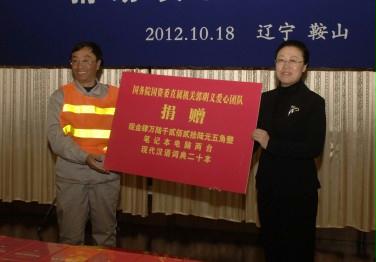 在與郭明(ming)義(yi)同(tong)志的(de)(de)座談交流會上,鞍(an)鋼集團(tuan)公司(si)黨委(wei)副書記、工(gong)會主(zhu)席(xi)尹(yin)利(li)代表鞍(an)鋼集團(tuan)公司(si)向國(guo)(guo)(guo)務(wu)院國(guo)(guo)(guo)資(zi)委(wei)直(zhi)屬機(ji)關(guan)(guan)郭明(ming)義(yi)愛心(xin)(xin)團(tuan)隊一行(xing)的(de)(de)到來表示歡迎。他說,在黨的(de)(de)十八大即(ji)將召開之際,國(guo)(guo)(guo)務(wu)院國(guo)(guo)(guo)資(zi)委(wei)直(zhi)屬機(ji)關(guan)(guan)郭明(ming)義(yi)愛心(xin)(xin)團(tuan)隊蒞臨鞍(an)鋼參觀(guan)、交流并指(zhi)導工(gong)作,這(zhe)是國(guo)(guo)(guo)務(wu)院國(guo)(guo)(guo)資(zi)委(wei)直(zhi)屬機(ji)關(guan)(guan)對(dui)鞍(an)鋼的(de)(de)重(zhong)視(shi)和(he)關(guan)(guan)懷,是對(dui)正在全(quan)力打好扭虧(kui)控(kong)虧(kui)增效攻堅戰(zhan)的(de)(de)鞍(an)鋼集團(tuan)全(quan)體職工(gong)的(de)(de)巨大支持和(he)鼓舞。