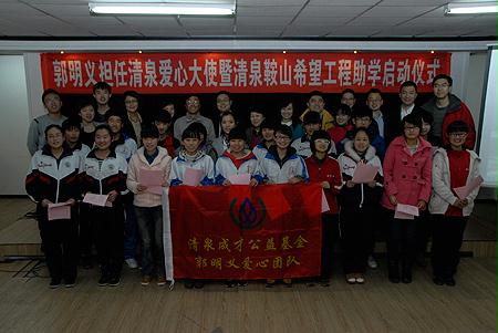 3月8日下午,“國(guo)資委(wei)直屬機關(guan)(guan)郭(guo)明(ming)義(yi)愛心團(tuan)隊”的青年志(zhi)愿者踏上(shang)了(le)赴遼寧鞍山(shan)的助(zhu)(zhu)學(xue)(xue)公益之旅。在陪同清(qing)泉基金工作人員實地走訪受(shou)資助(zhu)(zhu)學(xue)(xue)生家(jia)庭、參觀鞍鋼集(ji)團(tuan)雷鋒(feng)紀(ji)念館后,“國(guo)資委(wei)直屬機關(guan)(guan)郭(guo)明(ming)義(yi)愛心團(tuan)隊”青年志(zhi)愿者與受(shou)資助(zhu)(zhu)學(xue)(xue)生以及所(suo)在學(xue)(xue)校輔導員、部分學(xue)(xue)生家(jia)長共同見證了(le)郭(guo)明(ming)義(yi)擔任清(qing)泉愛心大使暨清(qing)泉鞍山(shan)希望(wang)工程助(zhu)(zhu)學(xue)(xue)啟動儀式,并與“當代雷鋒(feng)”郭(guo)明(ming)義(yi)同志(zhi)進行了(le)面對面的互動交流。