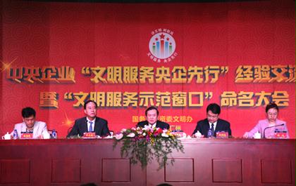 向獲(huo)得(de)“文明(ming)服務示范窗口(kou)”稱(cheng)號的中央(yang)企業(ye)授牌