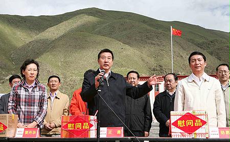 8月(yue)22日,國(guo)務院國(guo)資(zi)委(wei)主任王(wang)勇、副主任黃丹華帶領相關(guan)廳局(ju)負責人赴青海(hai)玉(yu)樹,在青海(hai)省省長(chang)駱惠寧、副省長(chang)王(wang)令浚(jun)的陪同下(xia),看望并(bing)慰(wei)問參與(yu)玉(yu)樹災后重建(jian)工作的中(zhong)國(guo)建(jian)筑、中(zhong)國(guo)中(zhong)鐵、中(zhong)國(guo)鐵建(jian)、中(zhong)國(guo)水電(dian)等四(si)家中(zhong)央企業的干部員工。