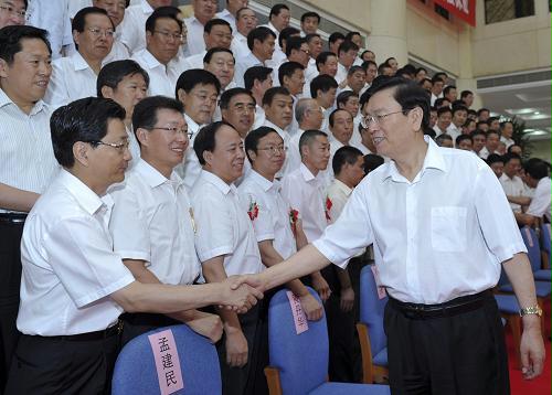 張德江在會見中央企業先進基層黨組織和優秀共產黨員、