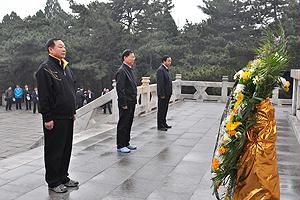 主題活(huo)動(dong)中,全(quan)體(ti)同(tong)志祭掃了(le)盤山革(ge)命(ming)烈(lie)士(shi)陵園,向(xiang)烈(lie)士(shi)紀念(nian)(nian)碑(bei)(bei)敬獻花(hua)籃(lan)(lan),深切緬懷在冀東(dong)抗日戰爭中犧牲(sheng)的(de)革(ge)命(ming)烈(lie)士(shi)。莊嚴的(de)烈(lie)士(shi)紀念(nian)(nian)碑(bei)(bei)前,全(quan)體(ti)同(tong)志寧靜肅立(li),集體(ti)向(xiang)英烈(lie)默哀致敬。郝(hao)明金、強衛(wei)東(dong)和中材集團黨(dang)委書記于世良緩步登上紀念(nian)(nian)碑(bei)(bei)基座(zuo),神情莊重地整理(li)花(hua)籃(lan)(lan)上的(de)緞帶(dai),并(bing)帶(dai)領全(quan)體(ti)同(tong)志瞻(zhan)仰了(le)紀念(nian)(nian)碑(bei)(bei)。青山有幸(xing)埋(mai)忠骨,先烈(lie)遺風育后人。通過(guo)祭掃活(huo)動(dong),每(mei)位同(tong)志重溫了(le)那段血與火的(de)悲壯歷(li)史(shi),永遠銘記抗日先烈(lie)的(de)豐功偉績(ji),激勵大(da)家繼承先烈(lie)遺志,堅定理(li)想信念(nian)(nian),牢記黨(dang)的(de)宗旨,同(tong)心(xin)協力,開拓進取(qu),以(yi)優異成績(ji)迎接黨(dang)的(de)十八大(da)勝利召開!