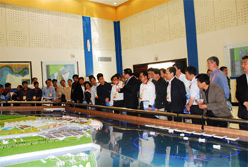 5月12日上午,考察團一行實地考察了唐山曹妃甸港區。在曹妃甸工業區規劃展示中心,考察團一行與唐山市曹妃甸工業區管理委員會領導進行了座談,詳細了解產業規劃和港區建設進展情況,對曹妃甸工業區按照科學發展觀制定的循環經濟框架表示了濃厚的興趣,進一步加深了對科學發展觀的認識。