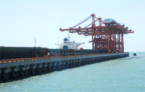 曹妃甸港區已經投入使用的25萬噸級礦石碼頭 |