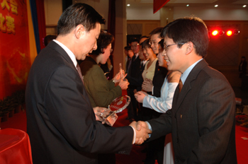 這次會議表彰了國資委直屬機關2006—2007年度讀書心得征文比賽優秀獎20名、論文評選優秀獎15名、直屬機關優秀共青團員20名、優秀共青團干部10名、五四紅旗團委(團支部)10個、學習型青年集體5個。