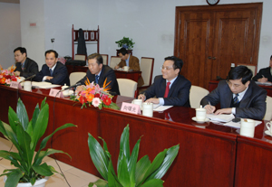 國務院國資委信息中心主任石治平匯報了“投資湖南”網頁建設情況;規劃局副局長張忠林匯報了中央企業開展對外合作情況。湖南省國資委主任莫德旺匯報湖南省企業與中央企業對接合作情況。參加座談會的還有國務院國資委辦公廳、規劃局、信息中心以及湖南省國資委的有關領導和同志。