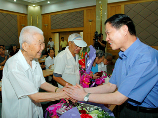 會上,李榮融和王瑞祥為到會的20多位參加過抗日戰爭的老戰士獻花并頒發榮譽獎章。老戰士們在會上作了主旨發言,與會干部職工、青年團員、民主黨派及歸僑僑眷代表在會上暢談了自身的感想,表達了不忘歷史、振興國家的強烈愿望。