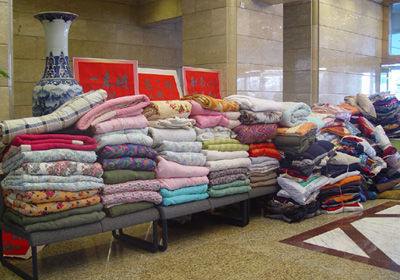 12月13日上午國資委機關工作人員在西便門捐贈點踴躍參加捐助活動。捐被子約150床,棉衣被褲、絨衣褲1800件。