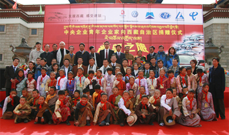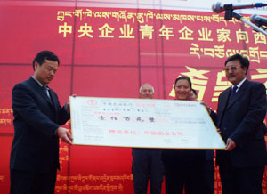 ——中央企業青年企業家西藏行考察團向西藏公益事業捐款捐物