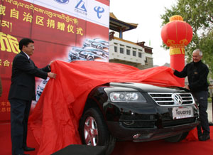 為表達對國機集團和大眾汽車(中國)、中國鋁業的感謝之情,西藏自治區青少年發展基金會、察雅縣委向他們獻上了潔白的哈達。大眾進口汽車銷售有限公司總監沙德與中國進口汽車貿易中心總經理丁宏祥將制作精美的水晶車鑰匙轉交給自治區青少年發展基金會代表。捐贈給西藏自治區青少年發展基金會的途銳汽車由國機集團和大眾汽車(中國)共同提供,用以支持西藏地區青少年的教育事業的發展。中國鋁業公司副總經理呂友清代表中鋁向察雅縣捐贈資金100萬元,其中50萬元助學資金、50萬元醫療衛生資金,用以支持當地的教育事業和醫療衛生事業。